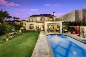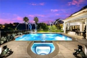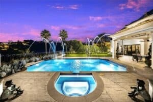 Step into a private sanctuary featuring a sparkling saltwater pool and spa, built-in BBQ station, multiple covered patios, and lush landscaping—crafted for year-round outdoor enjoyment.